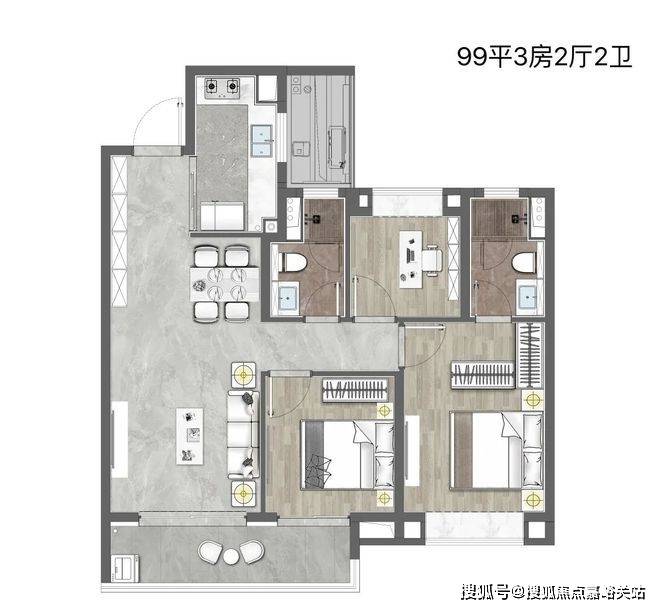 此外,在整体空间舒适度的打造上,独立西厨区、奢适餐客区、长U型厨房、主卧套房带玄关且南向双开窗,抢眼的窗墙比、隐私分区布局、3间次卧面宽进深比接近黄金比例、收纳空间充足,整体上空间奢享感的提升,满足了客群对于改善产品的需求,甚至超出了客户的预期。