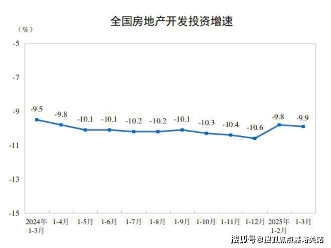 一、房地产开发投资完成情况1—3月份,全国房地产开发投资19904亿元,同比下降9.9%(按可比口径计算,详见附注6);其中住宅投资15133亿元,下降9.0%。