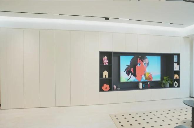 比如家里收纳空间不足的情况下,在电视背景墙的位置选择做一排收纳柜,增加收纳空间。