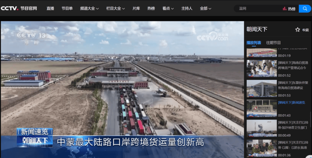 ●8月21日,《朝闻天下》发布视频《中蒙最大陆路口岸跨境货运量创新高》。(二连海关供稿)