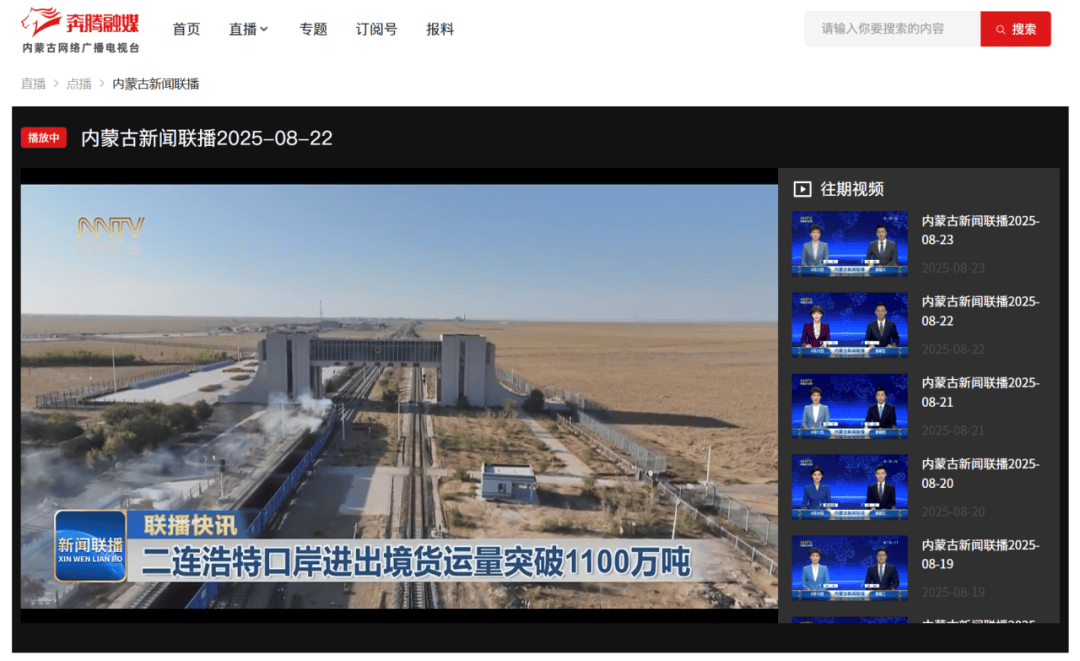 ●8月12日,《内蒙古新闻联播》发布视频《二连浩特口岸进出境货运量突破1100万吨》。(二连海关供稿)
