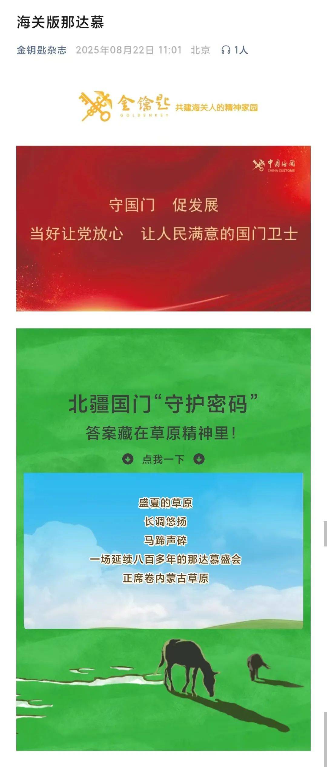 ●8月22日,《金钥匙杂志》微信公众平台发布文章《海关版那达慕》。(机关党委、额济纳海关供稿)