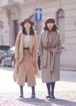上衣+半裙的灵活组合:上身可以选择一件材质舒适的绞花毛衣或高领羊绒衫,下身搭配一条量感复古伞裙。这组搭配既经典又富有层次感,活动起来也非常方便。